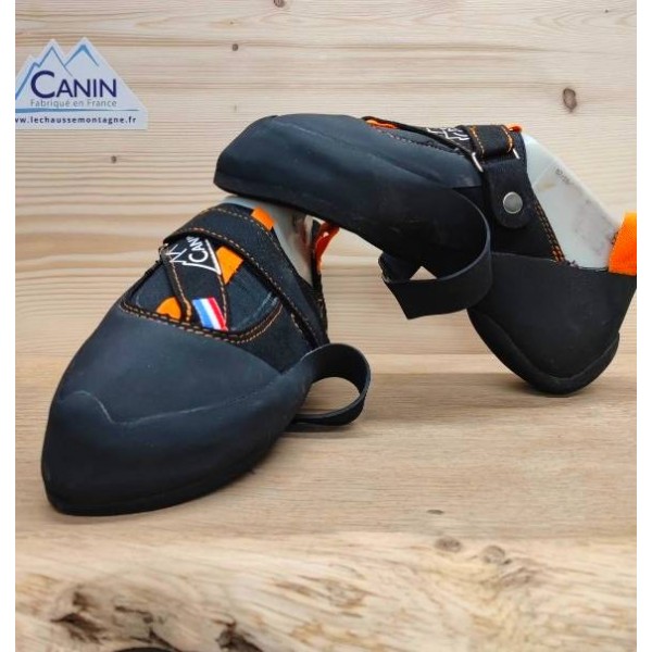 Chausson d'escalade griffé à scratch, offrant une grande technicité.